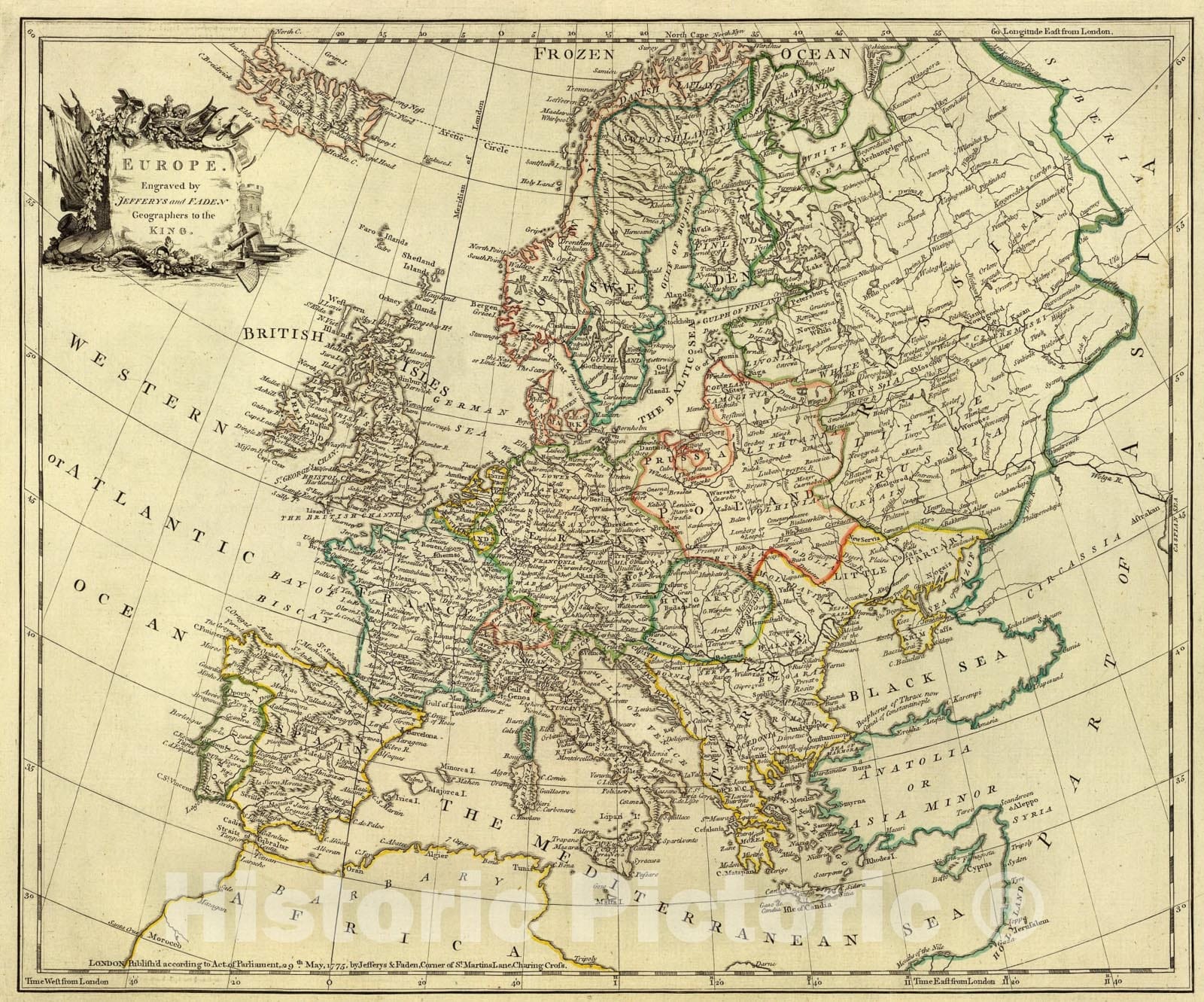 Historic Map : Europe., 1775, Vintage Wall Art Historic Pictoric